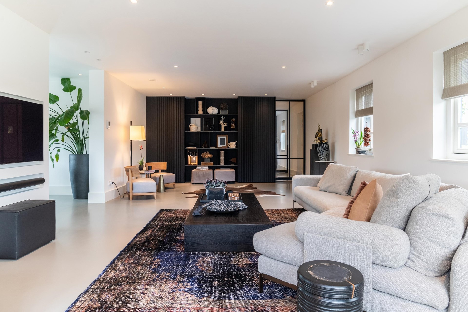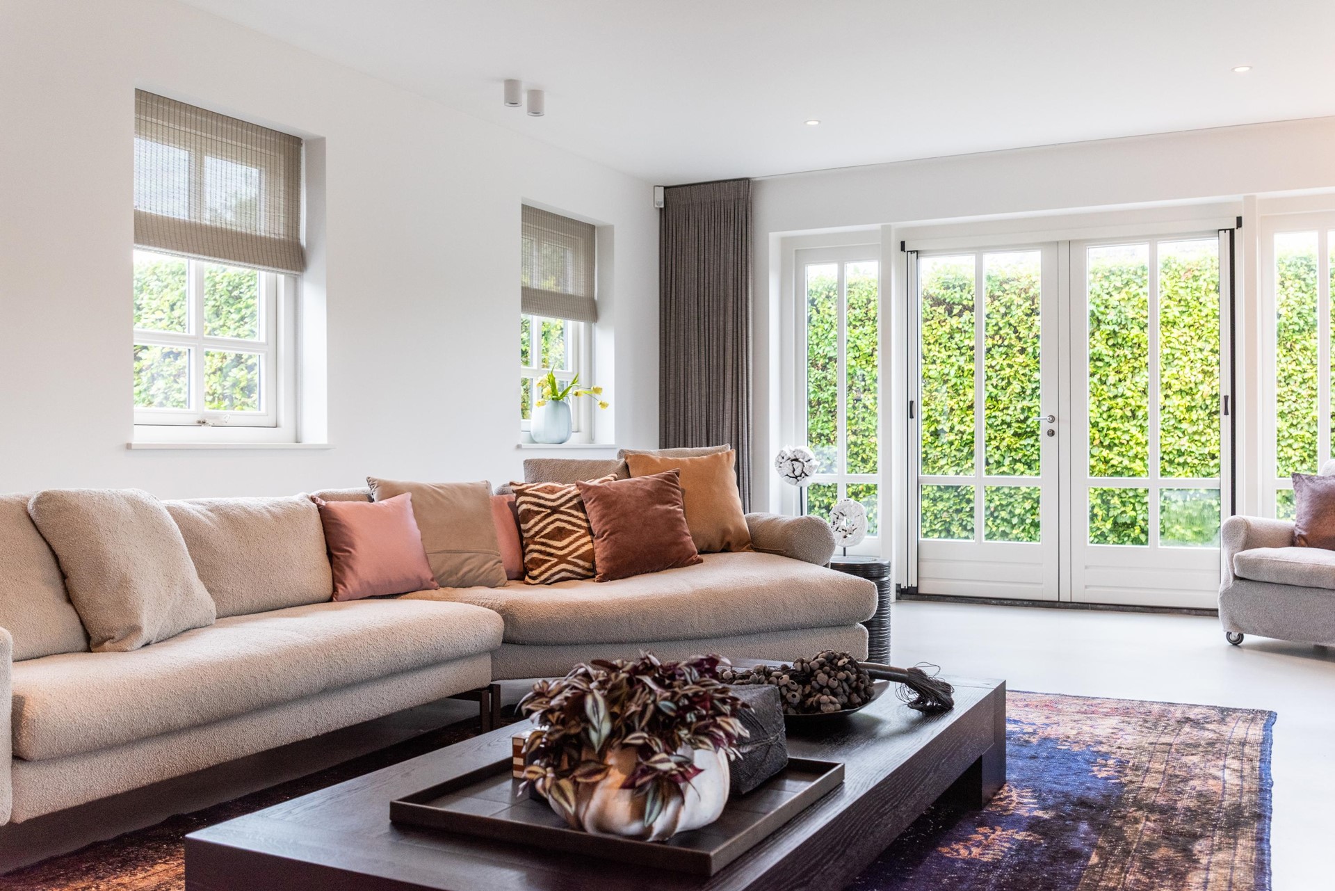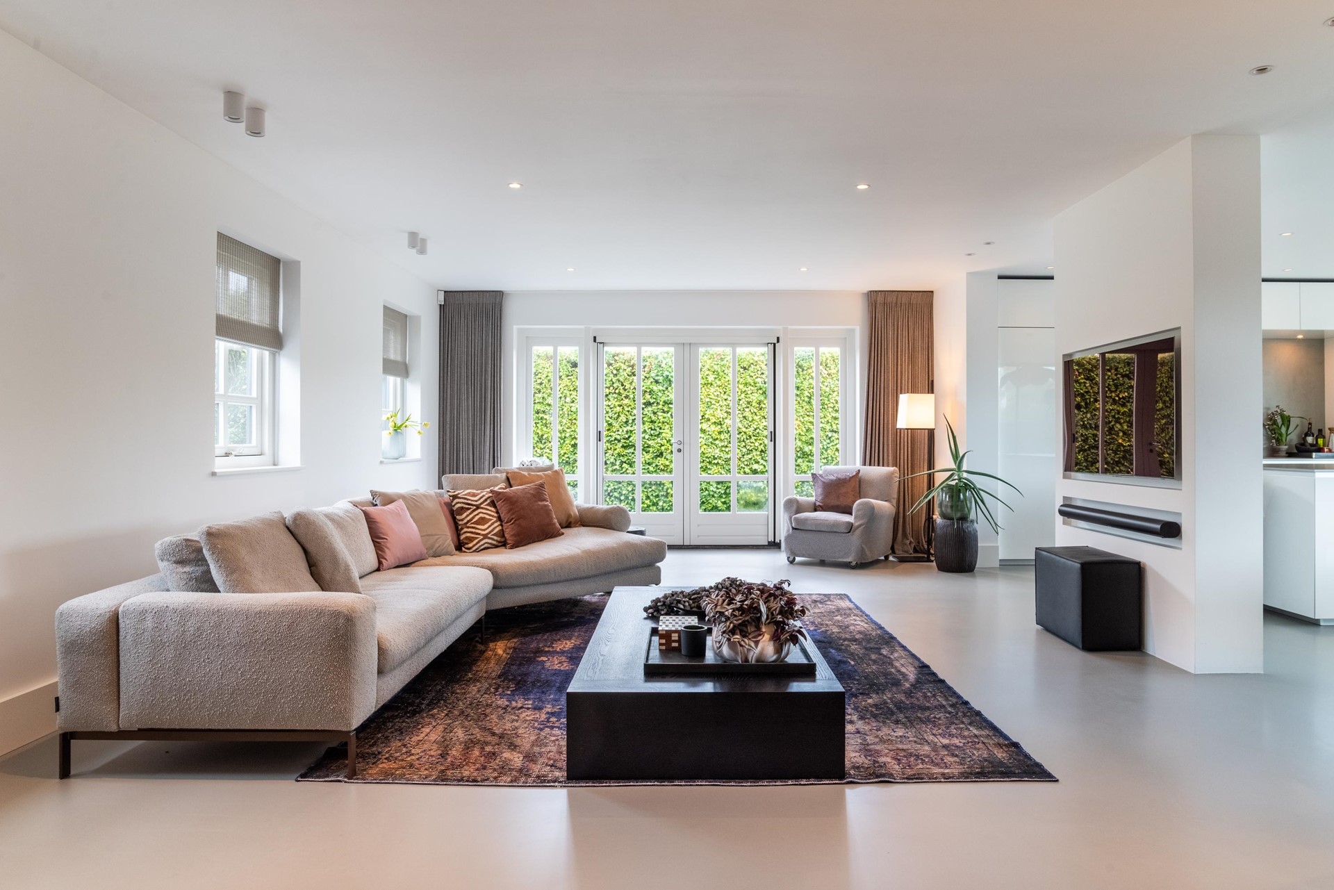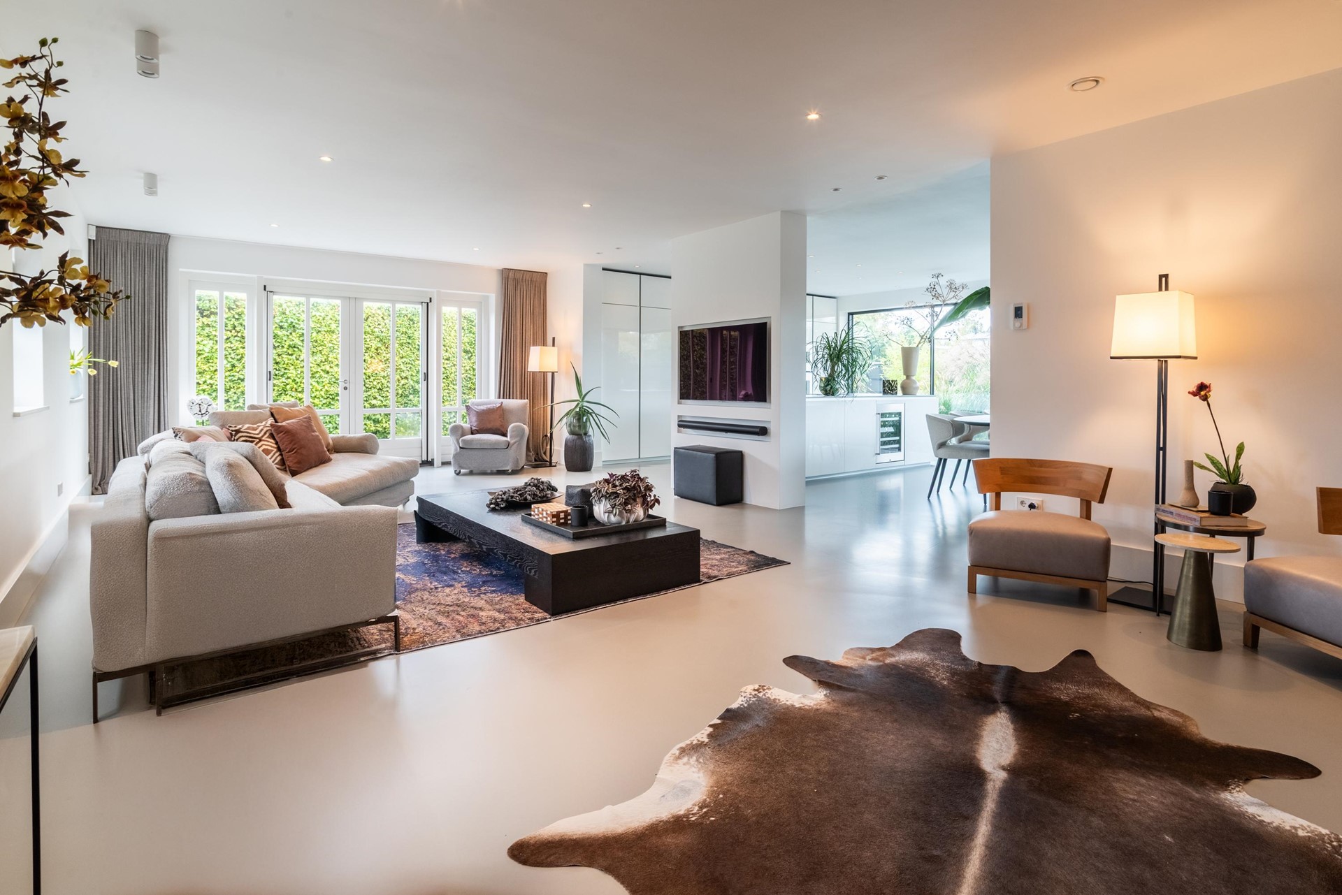 • Ruime woonkamer met inbouwkast en dubbele deuren naar de tuin