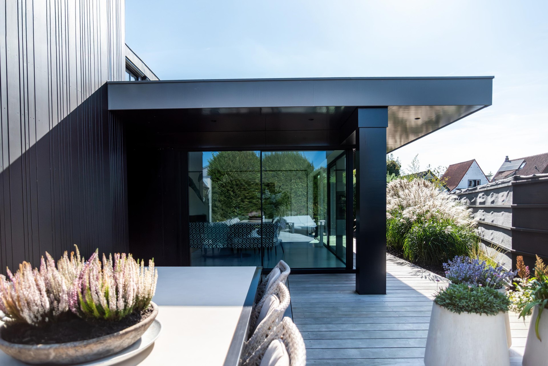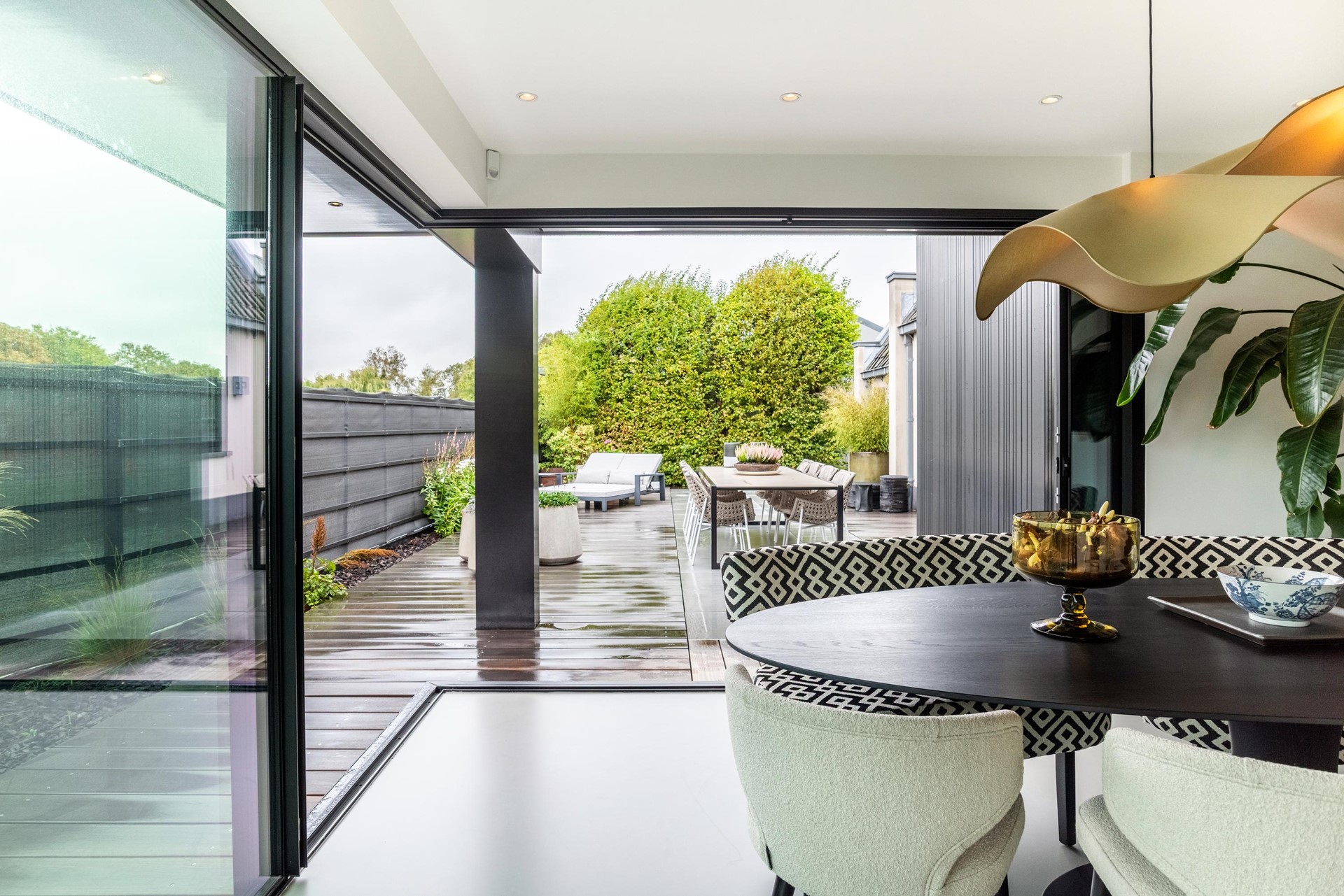 • Toegang tot de tuin via een hoogwaardige grote schuifpui (Tudor)