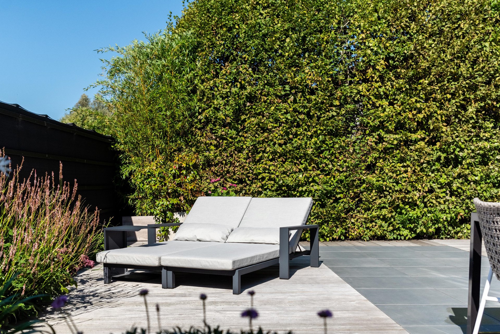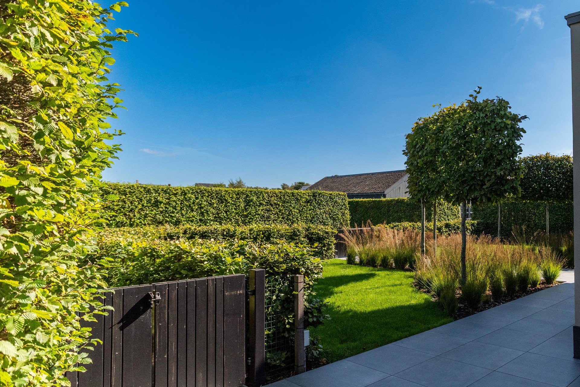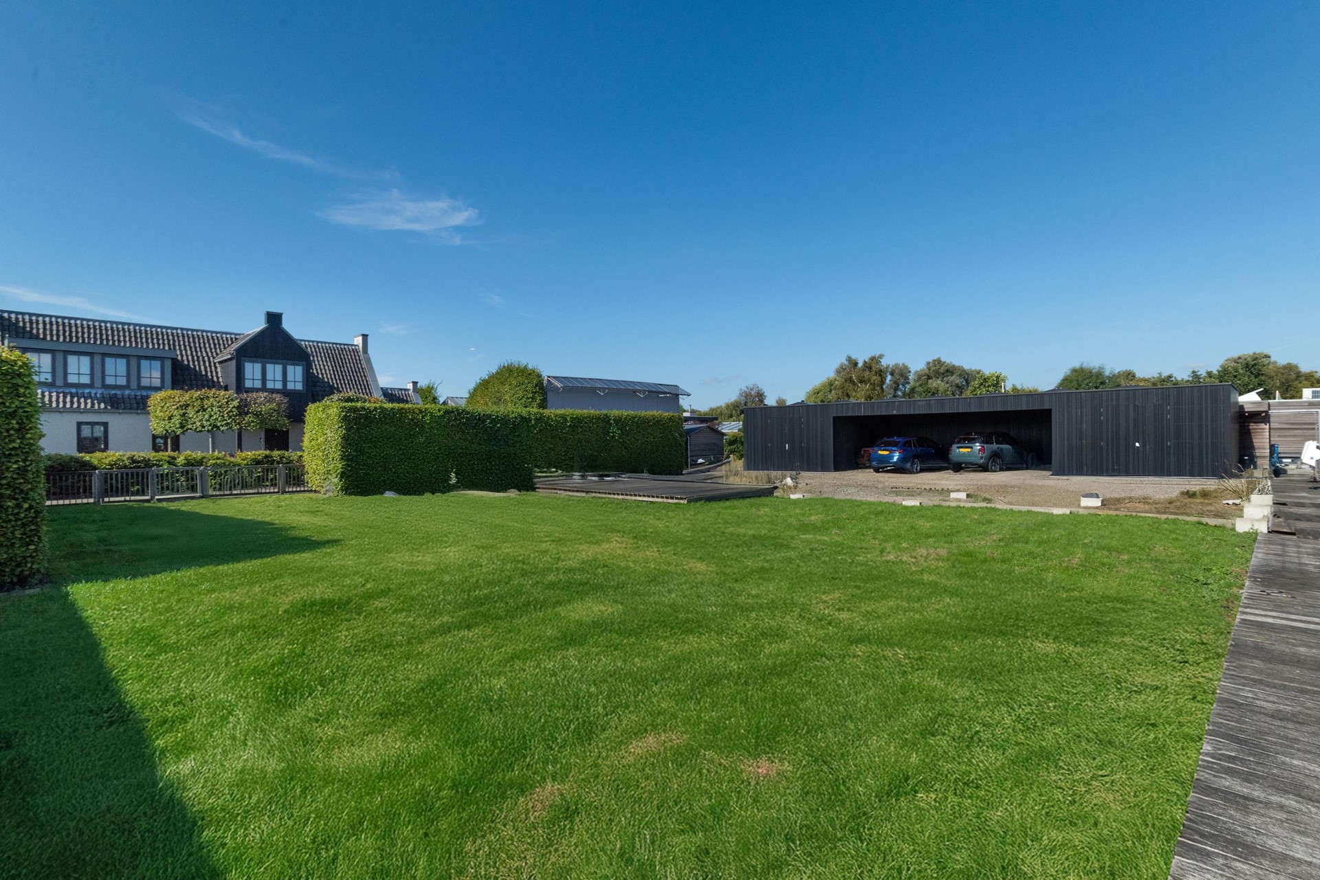 Het net achter het lint gelegen terrein is bereikbaar door middel van een app bedienbare poort met camera en geeft niet alleen het gevoel van veiligheid maar is dat ook daadwerkelijk.
