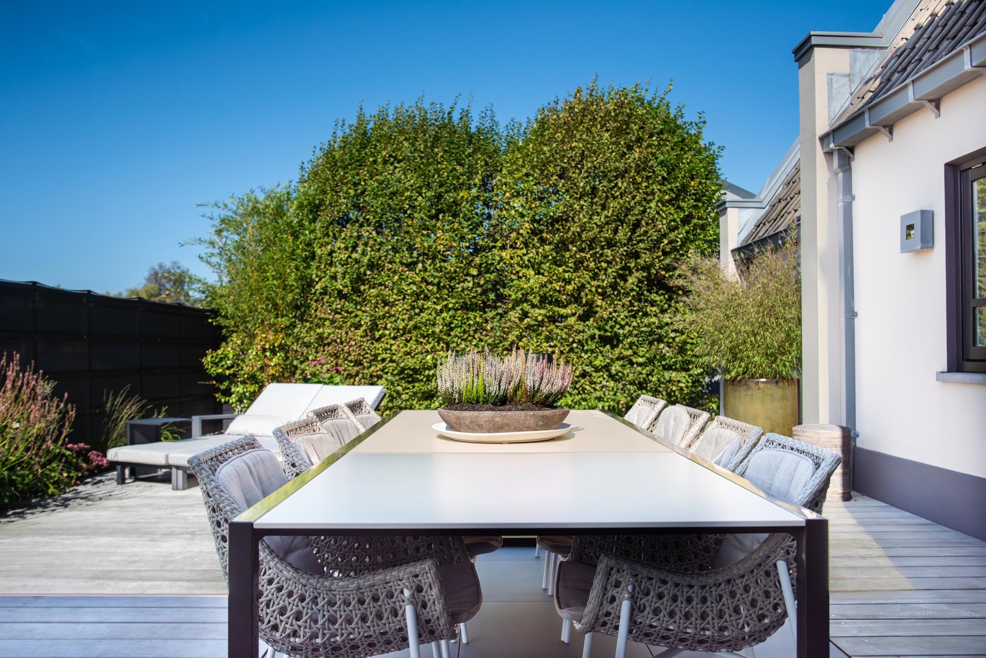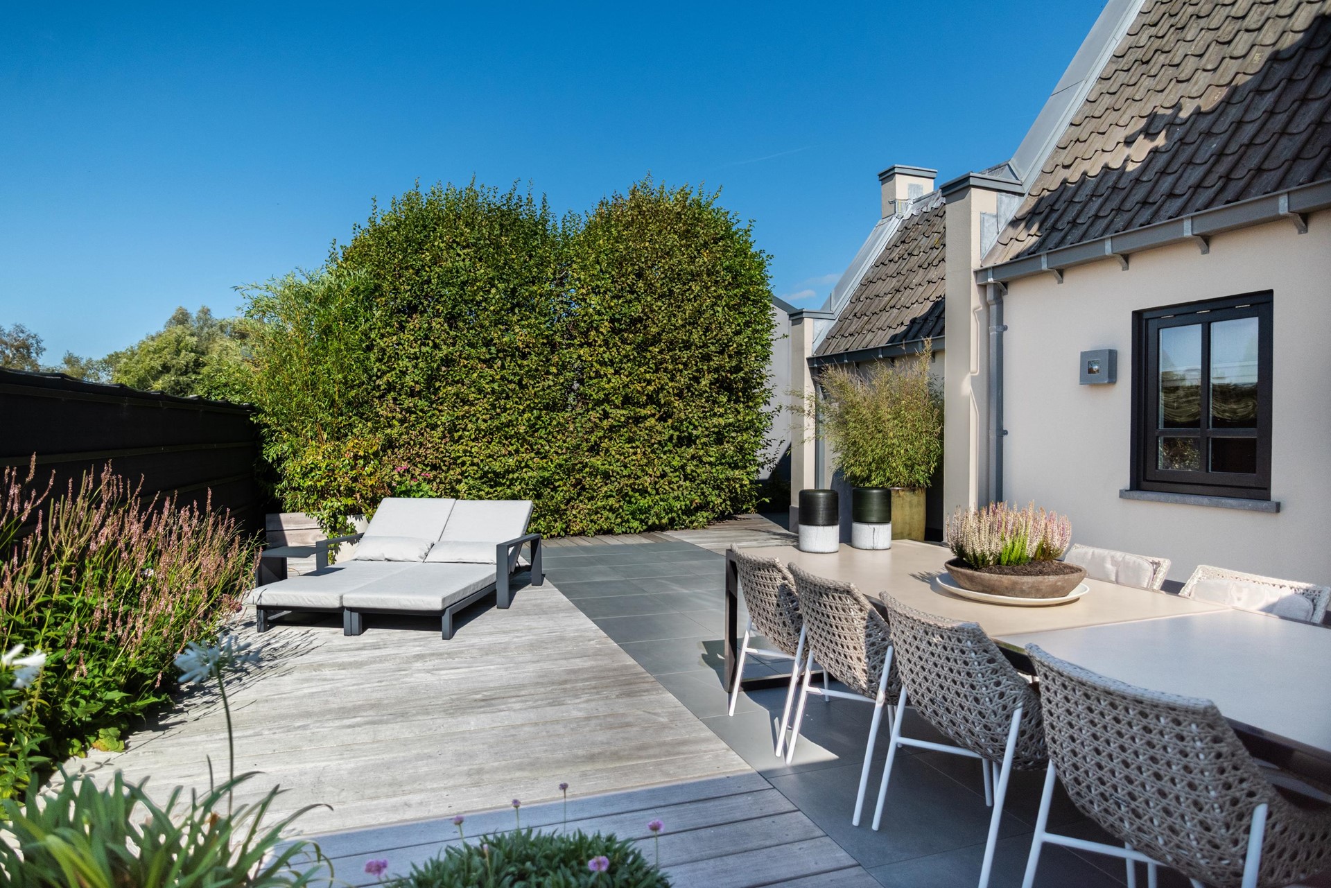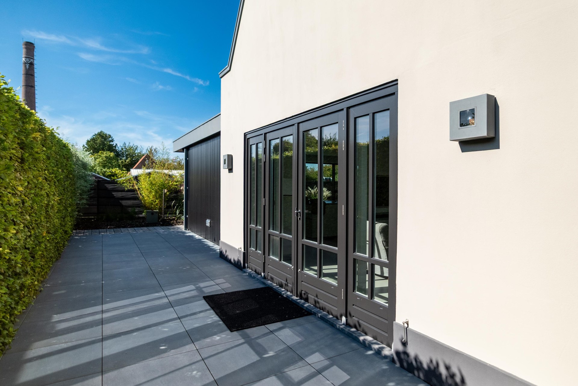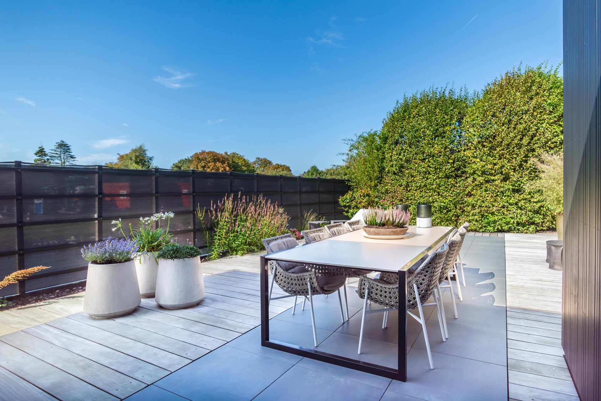 Het net achter het lint gelegen terrein is bereikbaar door middel van een app bedienbare poort met camera en geeft niet alleen het gevoel van veiligheid maar is dat ook daadwerkelijk.