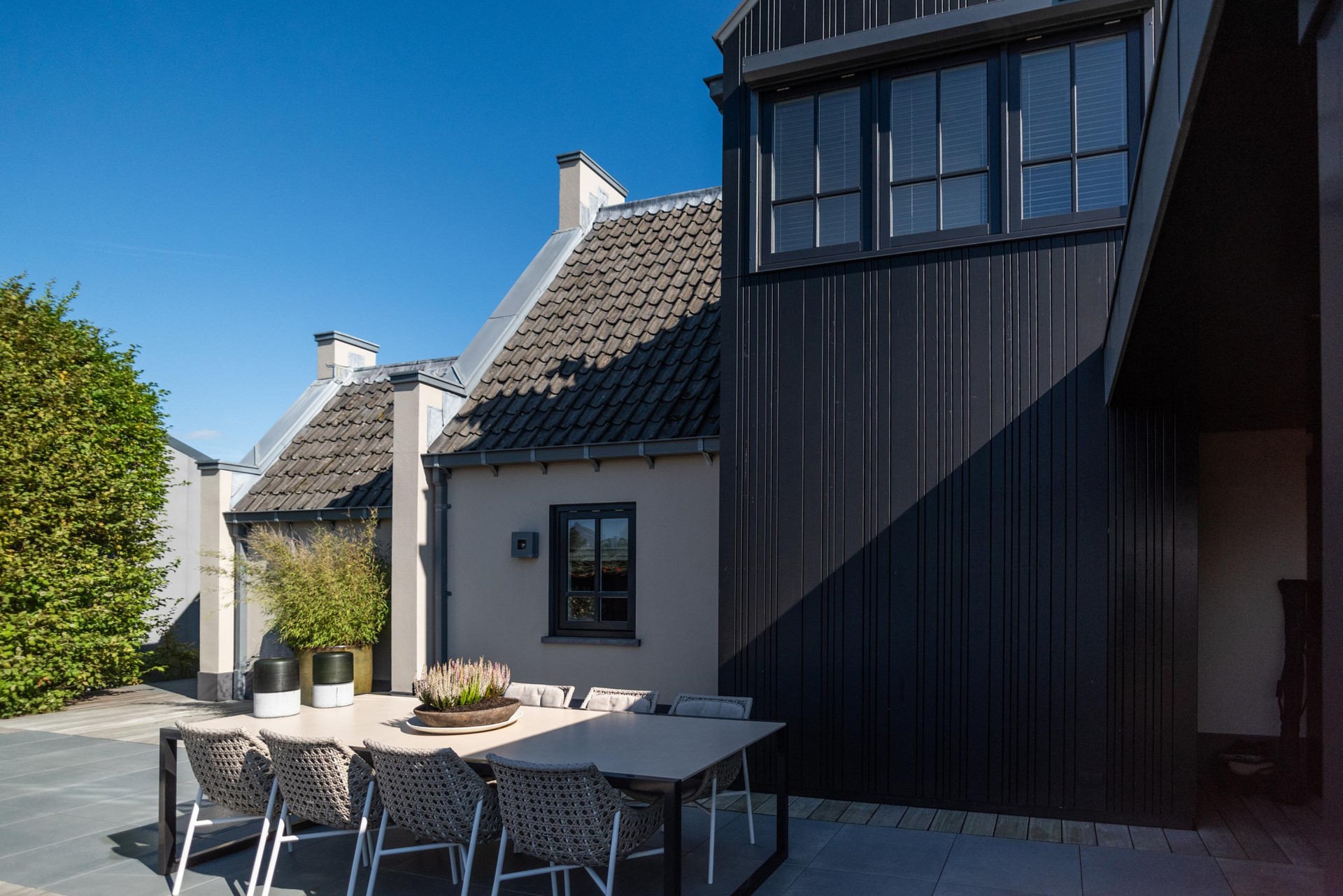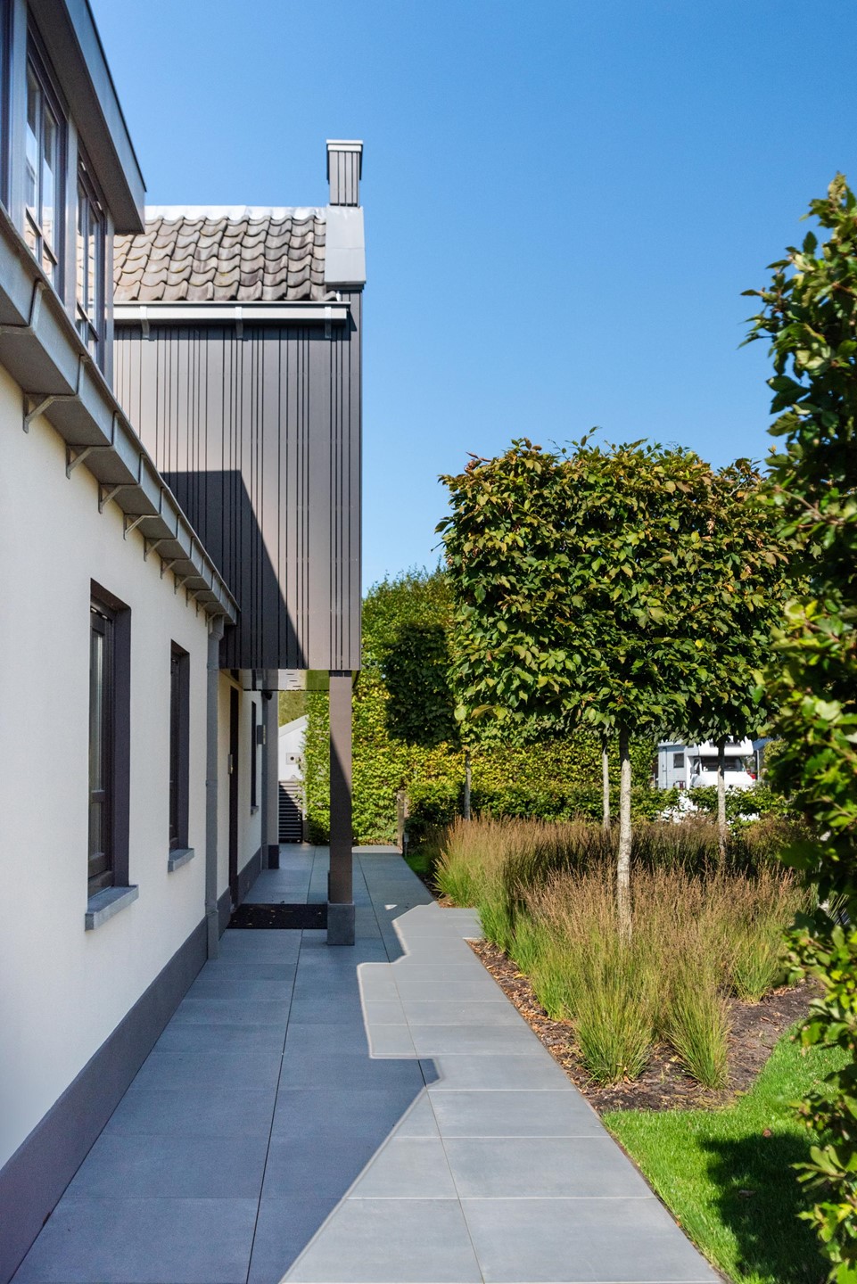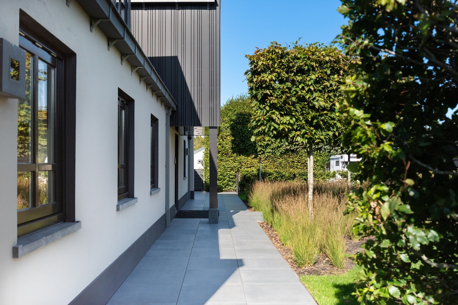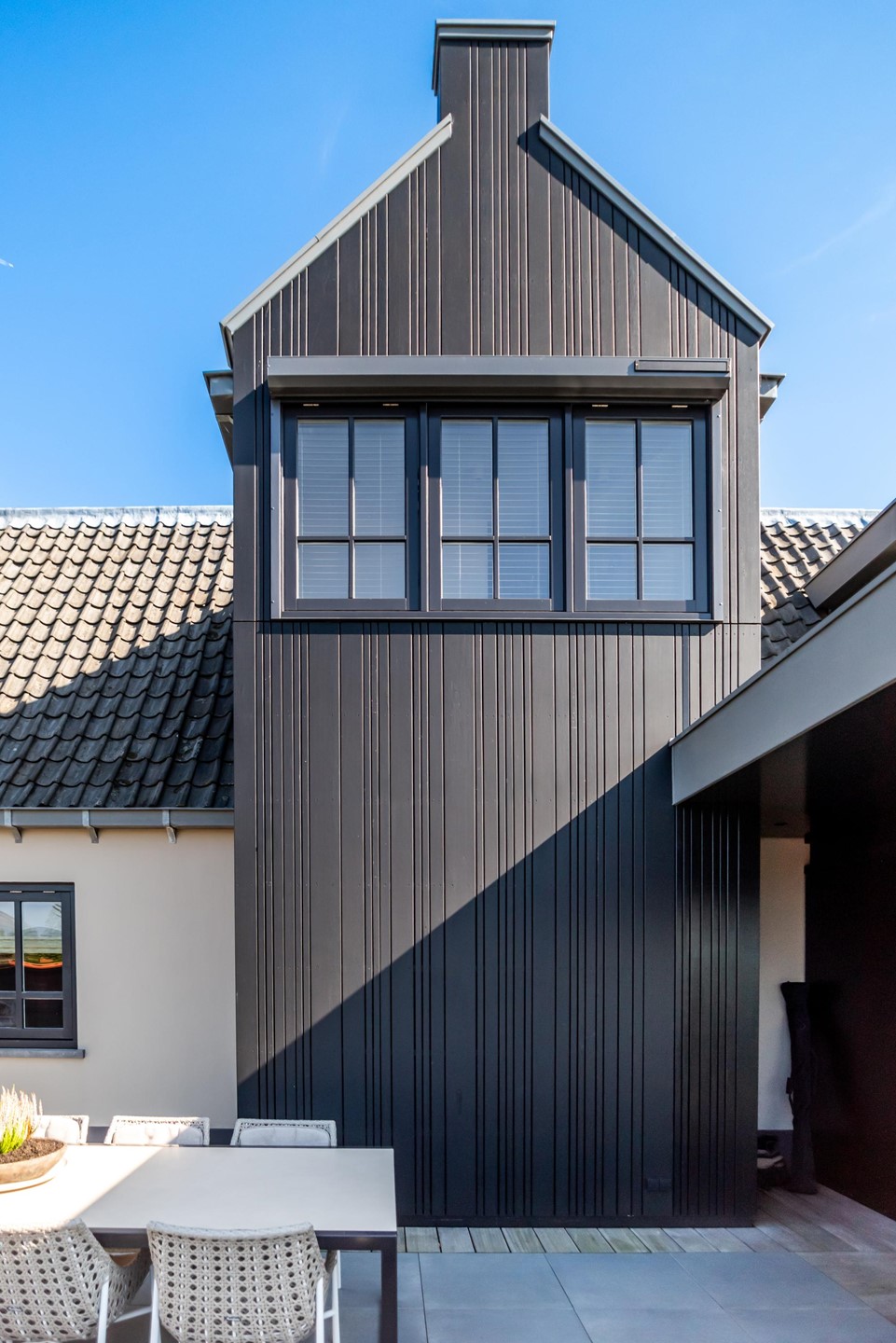 • Gevels van stucwerk en thermisch gemodificeerde houten delen