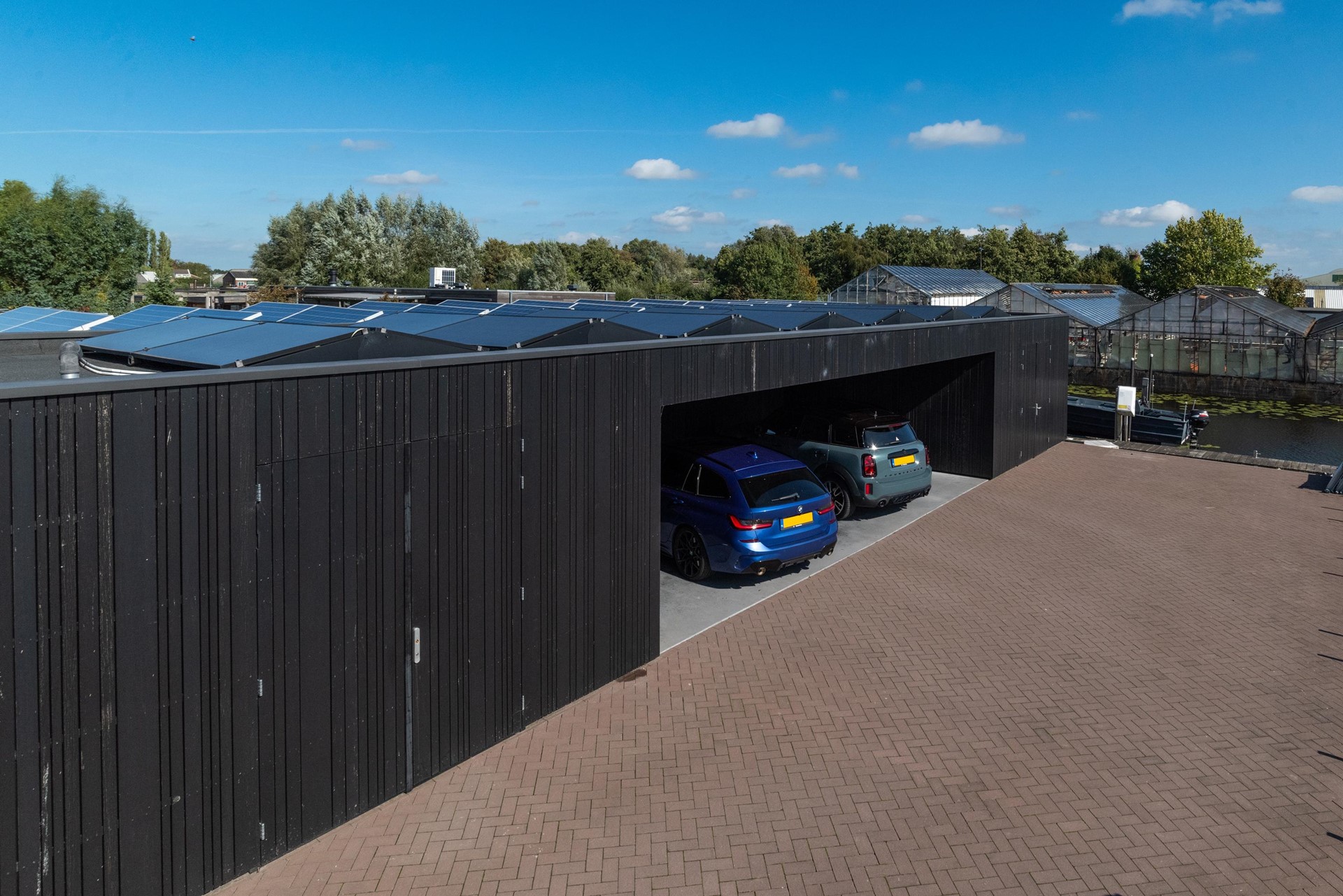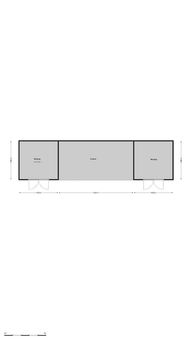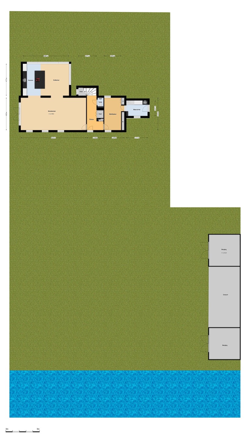 • Carport: 10 x 5 m², tussen de bergingen