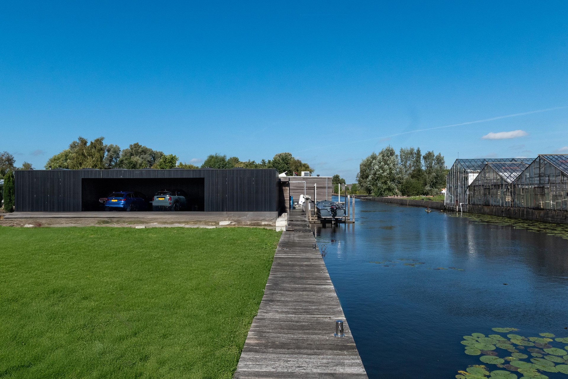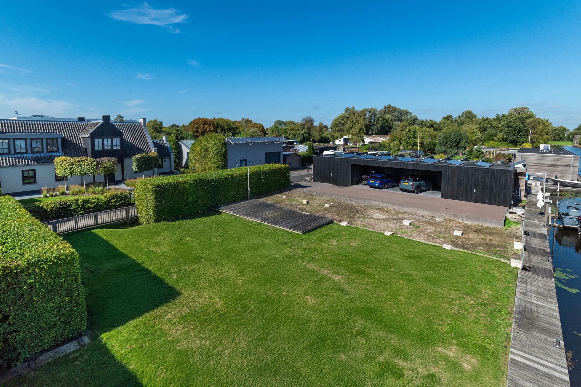 Deze in samenwerking met Piet Boon Studio ontworpen villa biedt een unieke combinatie van luxe, comfort en functionaliteit. Gelegen op een ruime kavel van 1855 m² eigen grond, beschikt deze woning over 183 m² woonoppervlak, een bijgebouw met twee bergingen van 25 m² met een tussengelegen carport van 50 m². De tuin rondom het huis biedt niet alleen rust, maar ook de mogelijkheid om te genieten van het aan beide zijde van het perceel gelegen eigen vaarwater met aanlegsteiger en een 9-tons botenlift. Bergingen zijn uitgerust met wateraansluiting, elektriciteit met krachtstroom en eigen groepenkast.