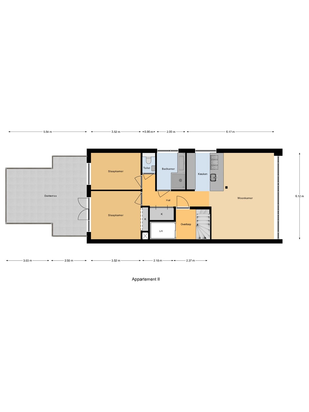 - Het appartement wordt casco opgeleverd d.w.z. exclusief keuken;